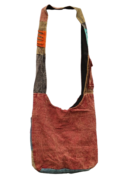 Deze hippie boho crossbody tas (ook wel slingbag genoemd) is handgemaakt en versierd met een grote bloem en razorcut op gekleurde vlakken.